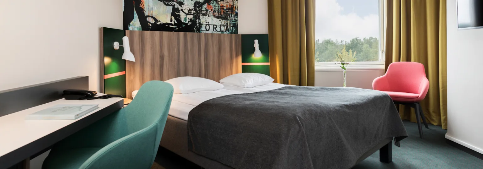 ProfilHotels President in Norrköping has its roots in two classic 1940s hotels – Ritz and Kullenberg. Today, it’s a personal design hotel where colorful interiors, art, and carefully selected details set the tone. Here you’ll also find Norrköping’s largest suite, featuring both a jacuzzi and a sauna – right in the heart of the city, next to the Motala River.